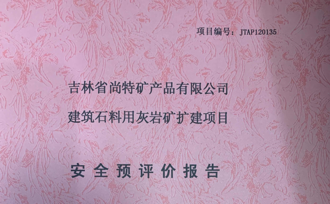 JTAP120135--吉林省尚特礦產(chǎn)品有限公司建筑石料用灰?guī)r礦擴建項目安全預(yù)評...