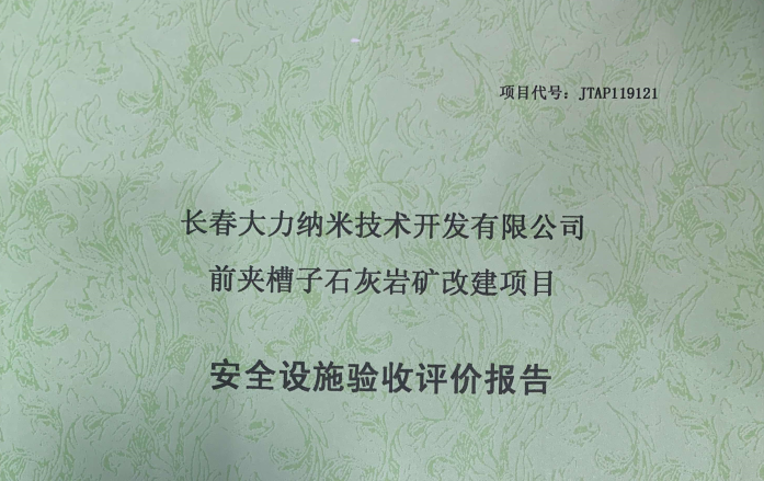 JTAP119121--長(zhǎng)春大力納米技術(shù)開(kāi)發(fā)有限公司前夾槽子石灰?guī)r礦改建項(xiàng)目安全...
