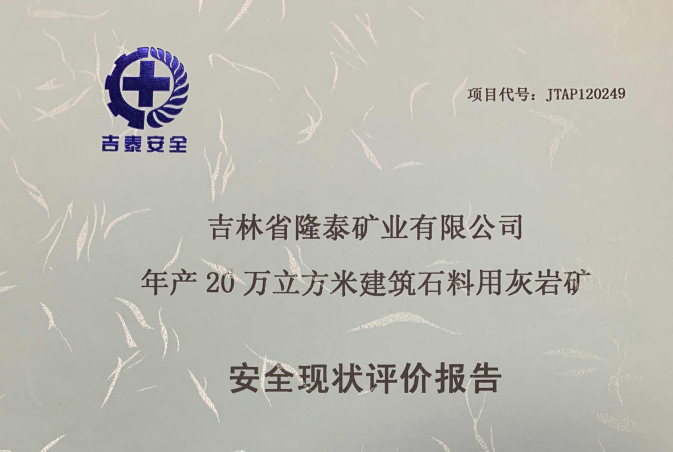 JTAP120249--吉林省隆泰礦業(yè)有限公司年產(chǎn)20萬立方米建筑石料用灰?guī)r礦安...