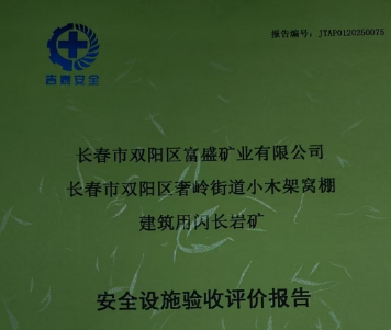 JTAP0120250075-長(zhǎng)春市雙陽(yáng)區(qū)奢嶺街道小木架窩棚建筑用閃長(zhǎng)巖礦安全驗(yàn)...